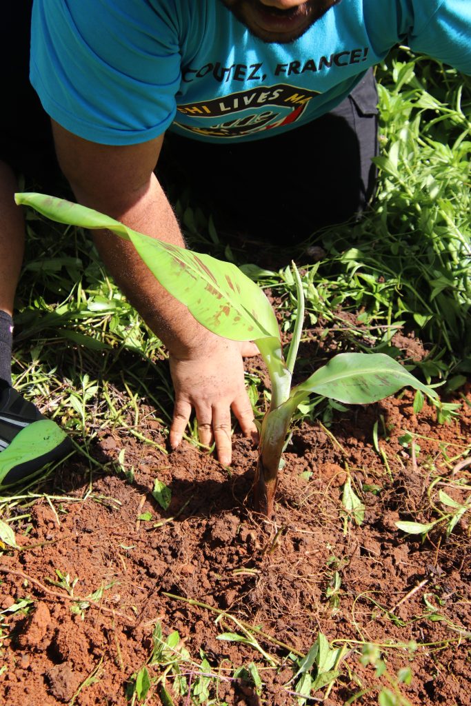 En dehors du réseau électrique et en utilisant des méthodes biologiques et la sagesse traditionnelle en matière de culture et d'utilisation des terres, nous avons planté du manioc, des ananas, des avocats et des patates douces.
